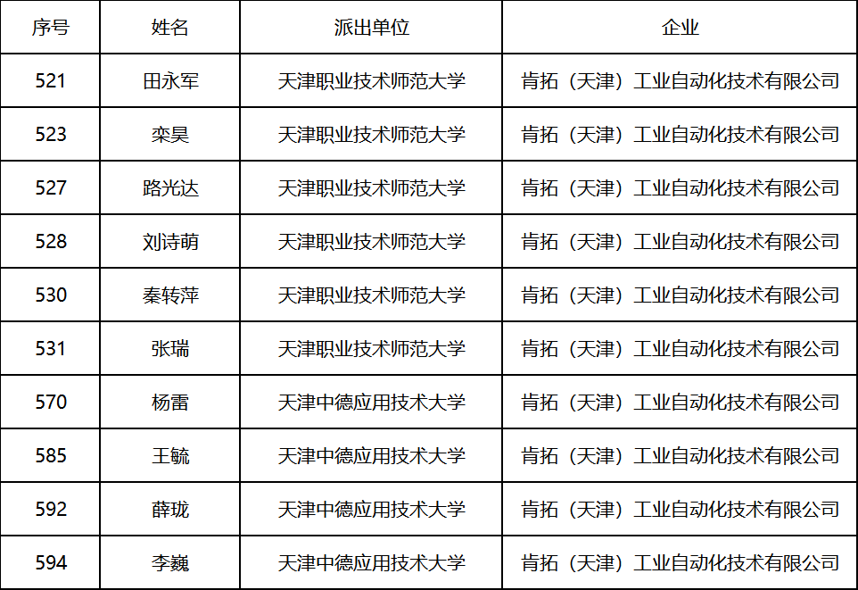 天津市2023年企業科技特派員入駐我公司名單