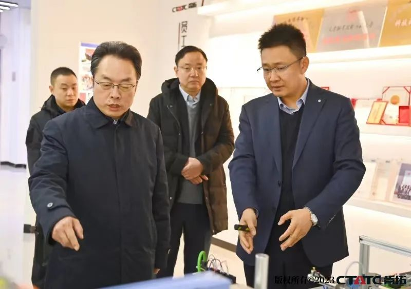 我公司黨支部書記、總經理葛云濤同志向領導一行介紹了企業發展歷程、組織架構、研發能力、產品體系、知識產權以及主要產品的技術特點、工藝特征、市場前景等基本情況,并詳細匯報了企業與天津市各高等院校、職業院校在橫向課題研發、科技成果轉化、技術技能大賽等方面的合作,以及工業項目、教育項目實施情況。朱鵬副市長在聽完匯報并對公司展廳、調試車間進行考察后,對我公司在智能制造高端裝備產業領域的創新、探索以及取得的成果給予充分肯定,并希望公司在未來的發展中不斷加大科技研發投入,持續發揮技術引領優勢,繼續深化產教融合,提升核心競爭力,為科技創新和區域經濟發展貢獻更多智慧和力量。