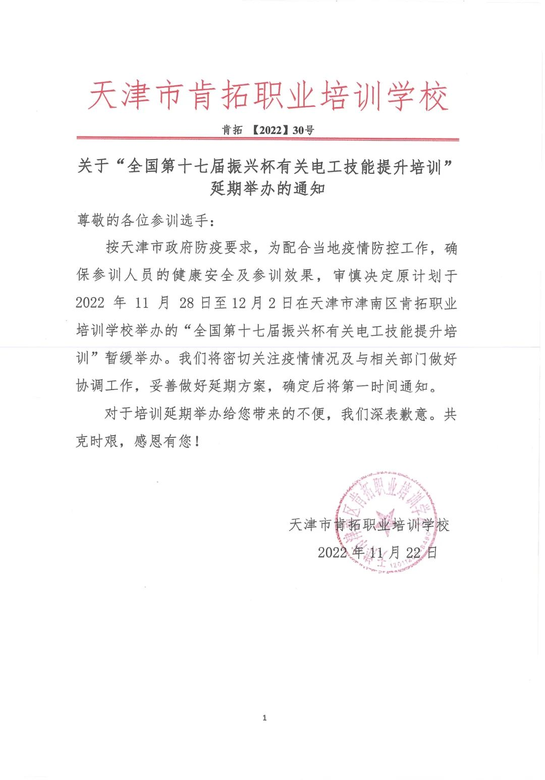 關于全國第十七屆振興杯有關電工技能提升培訓延期舉辦的通知11.22.pdf