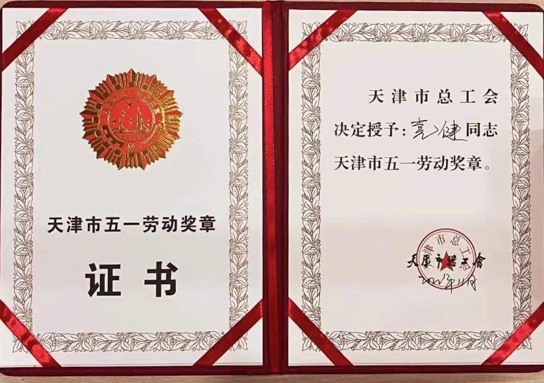熱烈祝賀我公司員工黨健獲得天津市五一勞動獎章!