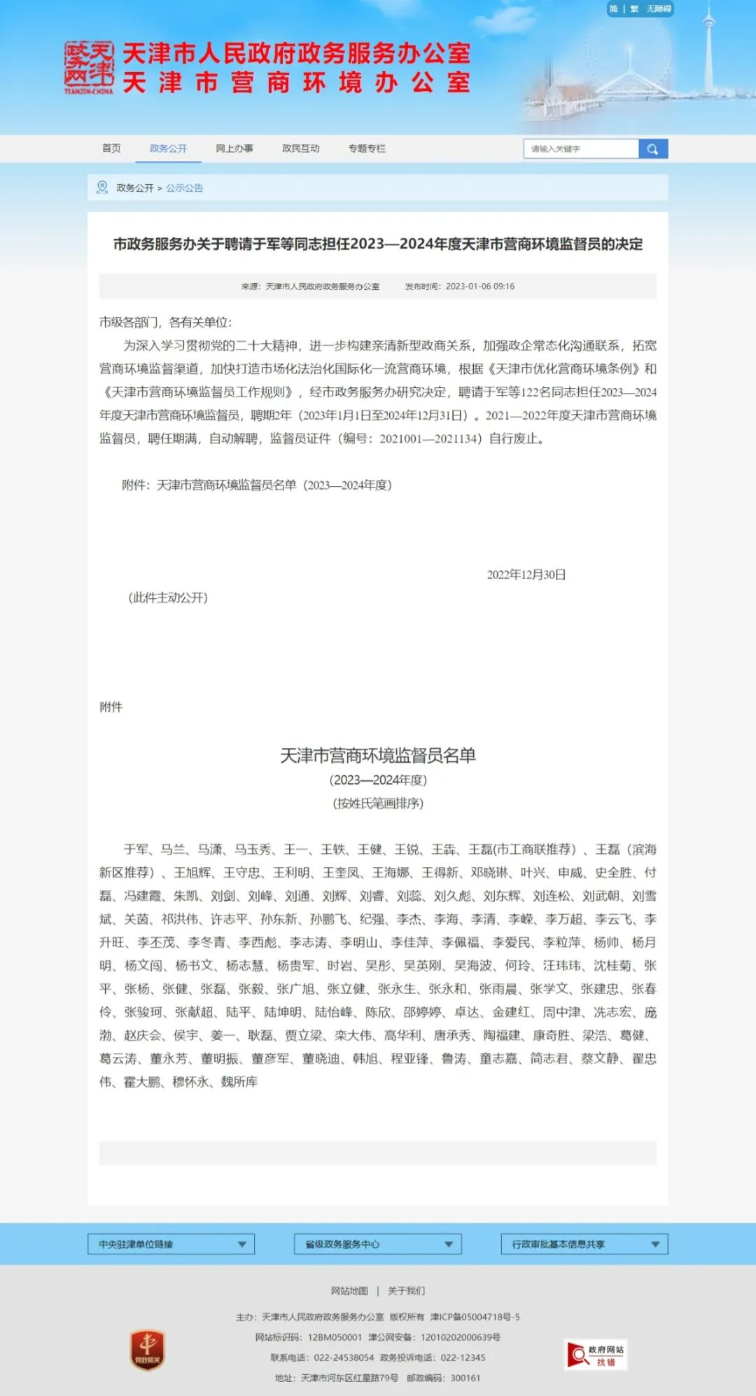 近日,市政務(wù)服務(wù)辦發(fā)布了《關(guān)于2023—2024年度天津市營商環(huán)境監(jiān)督員》的決定。我公司黨支部書記、總經(jīng)理葛云濤被聘為“2023-2024年度天津市營商環(huán)境監(jiān)督員”。