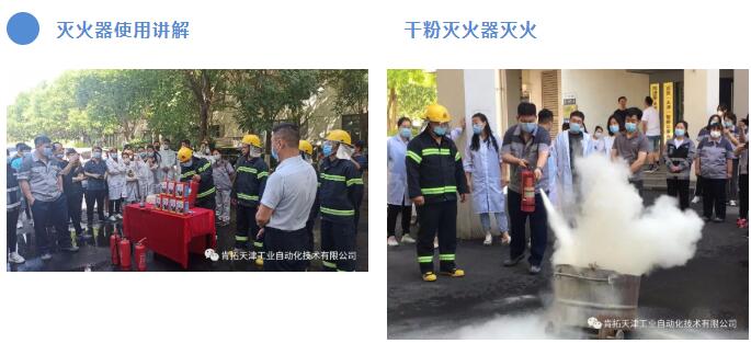 本次消防演練分為遇到火警報警信號緊急疏散撤離、現場講解滅火器使用常識以及現場進行演練使用干粉滅火器滅火等環節。